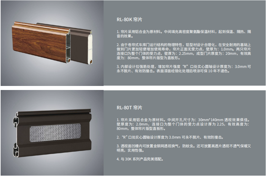 产品参数 门板厚度:2.0mm 门板高度:80mm 铝材壁厚:1.0mm 颜色配置